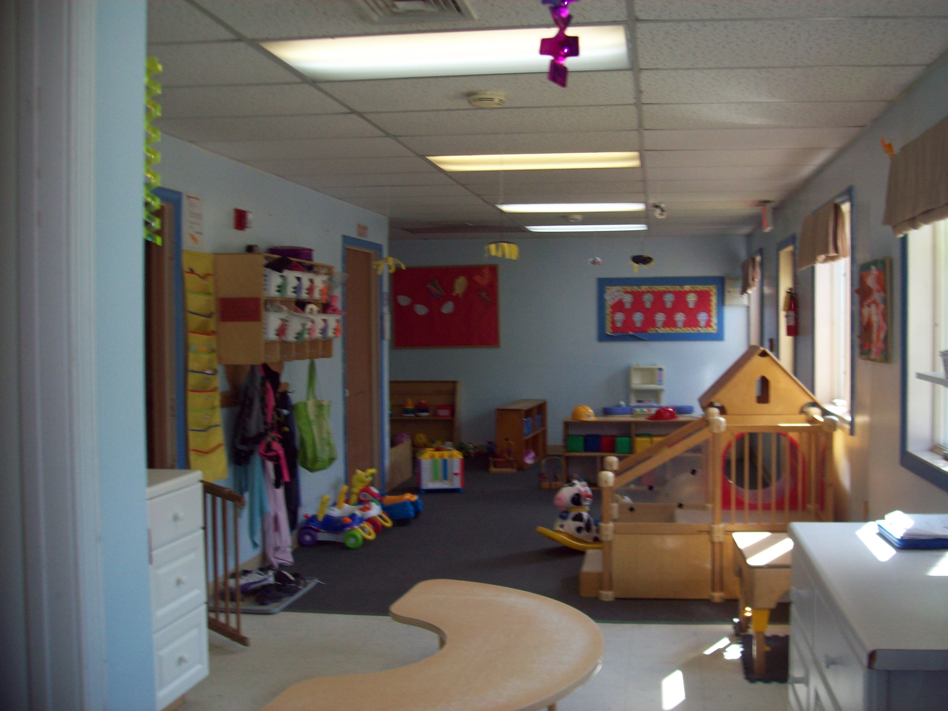 The environments are designed to stimulate growth and development of the individual child in a safe and caring environment. Care is given to infants in a warm, affectionate way to let each child know that he or she is a special person. Meeting the infant’s needs and promoting growth in areas of trust, brain stimulation and social relationships are key components of our infant program. The classroom also fosters those children who are just learning to cruise or walk but not yet ready for the faster pace of older toddlers. They are learning to become a bit more independent as they explore their new abilities in a safe and loving environment.